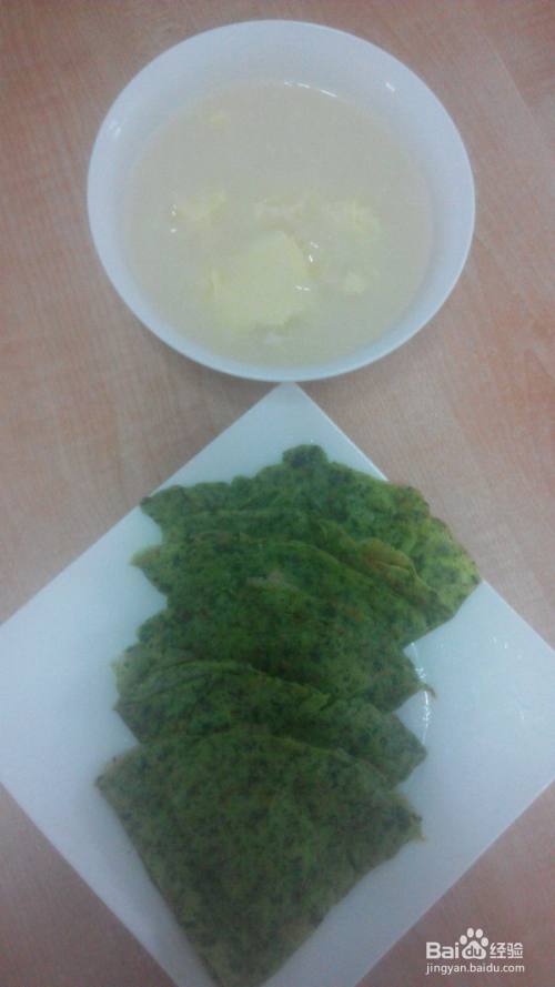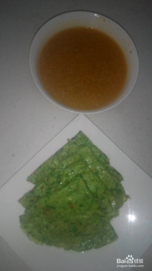 补充:同法做的小青菜鸡蛋彩色煎饼(小青菜加水用料理机搅打下)、搭配红枣南瓜黑小米粥。
