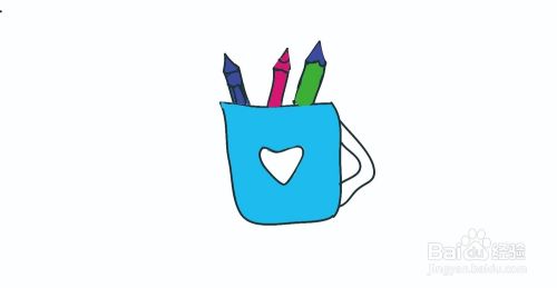 用水彩笔为笔筒涂上颜色,笔筒简笔画完成啦。