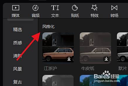 第一步,咱们在剪映这里找到风格化滤镜选项。