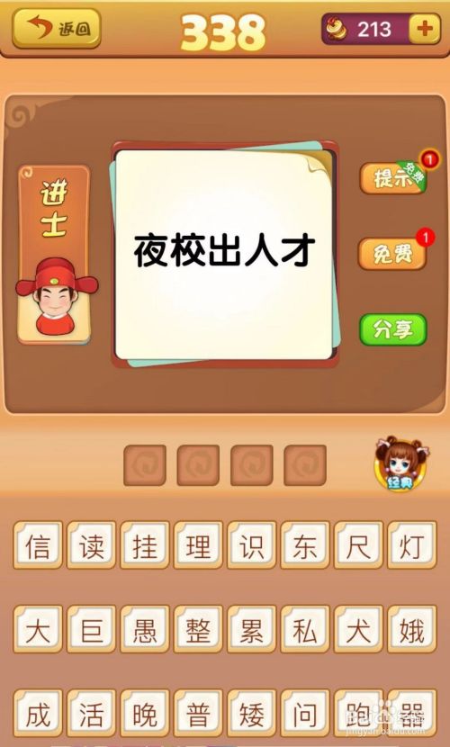 图片中有四个字:夜校出人才。也就是说在晚上上课才成的才,所以这个成语是大器晚成