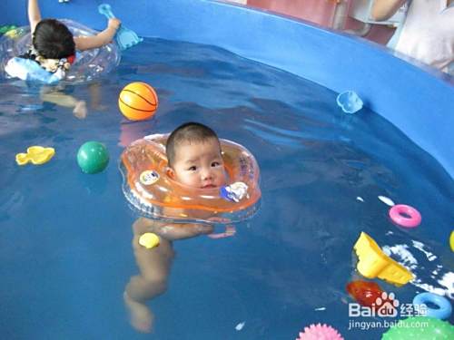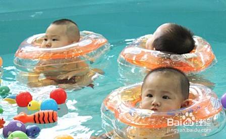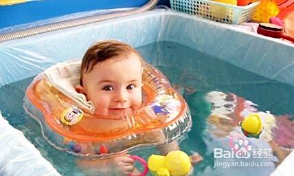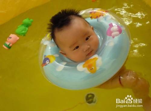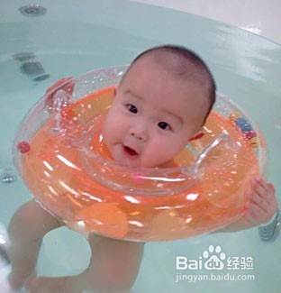 给宝宝套消毒好且清理干净的游泳圈,一定要选型号合适的游泳圈。