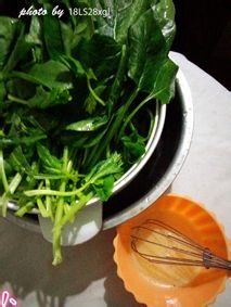菠菜去掉根,拣去老叶,洗净,沥干水分备用;鸡蛋洗净,磕进碗里,放点盐打散备用。