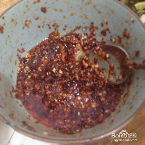 待黄瓜腌完有15分钟左右,可以将姜蒜辣椒油准备放入。
