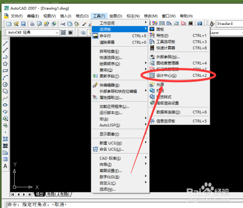 然后在弹出的【选项板】对话框中选择【设计中心】并打开。