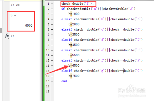 接着用多级if语句创建了下图多级判断程序,可以实现根据输入的字母,输出对应参数b的值,而且不会区分字母大小写,因为同一判定条件加入了字母大小写形式。但是如果条件再多,程序将会无限延长,可以用其他思路,进行解决。