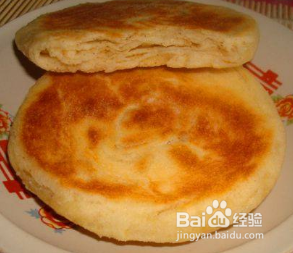 成品制作:将醒好的面分成五六个等份面纠擀成面片,把之前做好的五香油酥料包入,用手压成圆饼状放到饼铛上烙,颜色讨棍变成金黄色便可