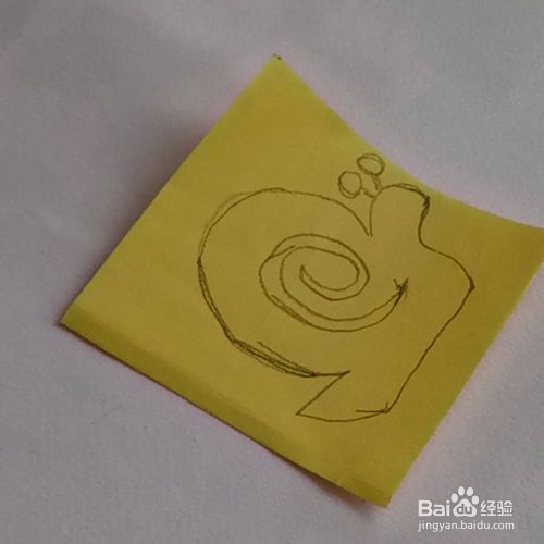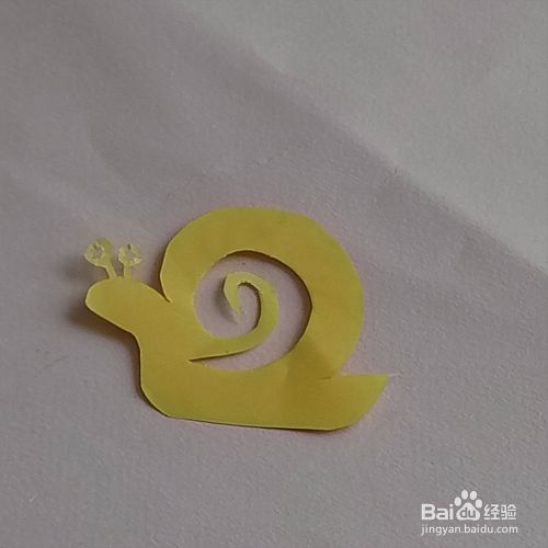 我们再拿剪刀把小蜗牛外面的形状一点一点剪出来