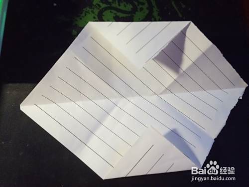 折好之后呢。就可以直接对着就像一个梯形一样的形状的时候,就可以直接的将梯形的二个斜边部分直接的折过来。那么,狗头就折好了。