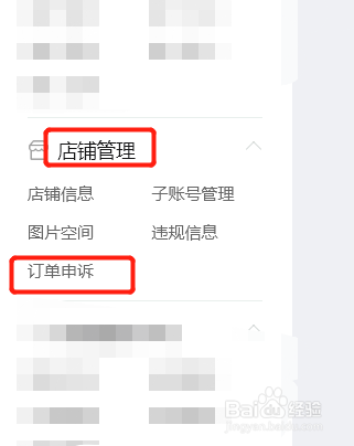 2,在左侧找到‘店铺管理’---点击‘订单申诉’