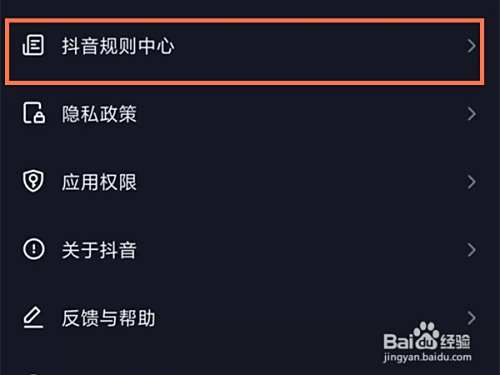 2、点击抖音规则中心。