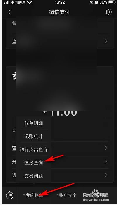在微信支付对话框,点击左下的我的账单,点击退款查询。