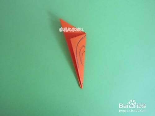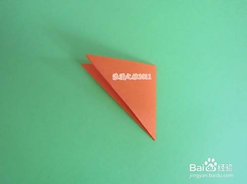 再向左对折,边角要对齐,大家一定看出来了,到这一步,就完成了四折剪纸的折法。如图所示。