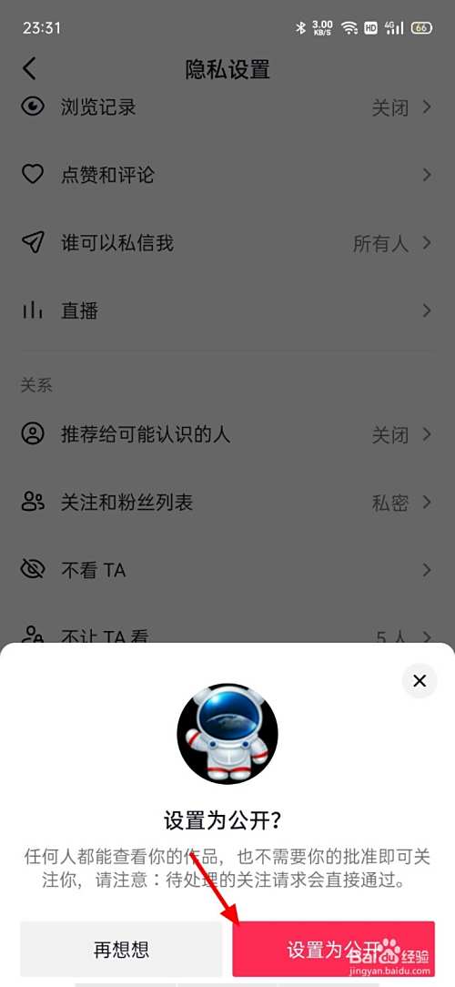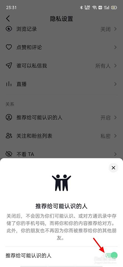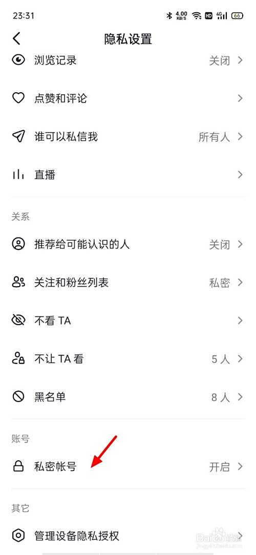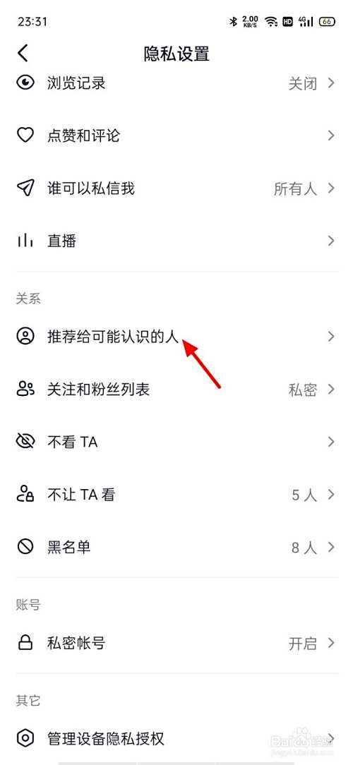 打开抖音,在我选项下打开菜单选项。在设置选项下打开隐私选项。打开推荐选项,单击私密选项,确定即可。