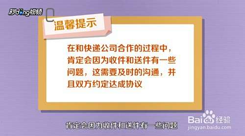 温馨提示:在和快递公司合作的过程中,肯定会因为收件和送件有一些问题,这需要及时的沟通,并且双方约定达成协议。