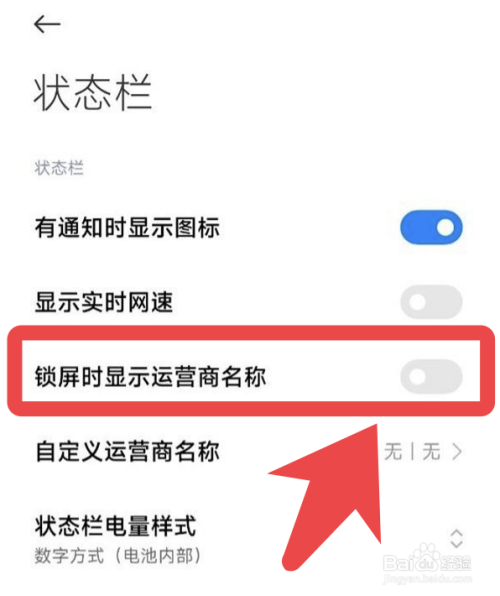 然后我们点击开启【锁屏时显示运营商名称】即可。