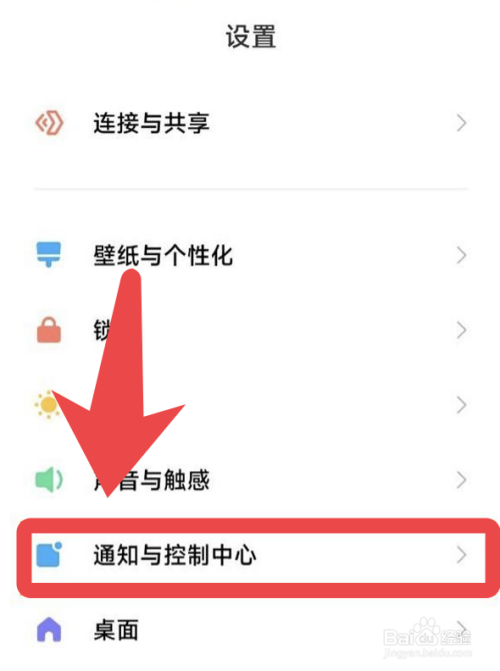 进入设置界面,点击下边列表的【通知与控制中心】。