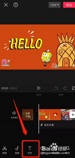 将视频导入剪映中,点击文字。