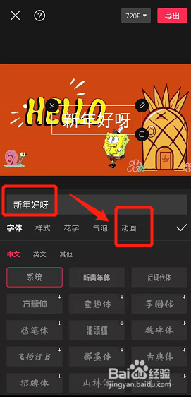 输入文本后,点击切换到动画。