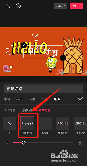 在动画页面,选择滚动字幕的动画效果,点劣码击保存即可。