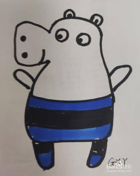 最后一步,如图所示,给小河马的衣服涂上颜色,完成。