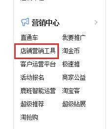 进入淘宝后台我是卖家,找到营销中心,选择【店铺营销工具】。