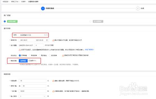 按照步骤填好就可以了,我这边的例子是花朵裙需要满99-10元。设置好确认就可以了。