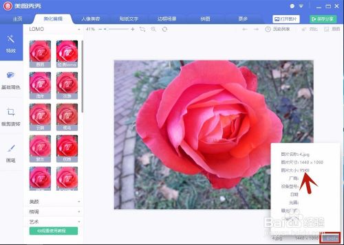 重新打开所修改的图片,点击屏幕右下角的“EXIF"按钮,即弹出图片的大小为95KB,图片已经被缩小了。