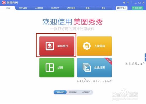 打开“美图秀秀”,点击“打开图片”,这里选择一个后缀为”jpg”图片文件。