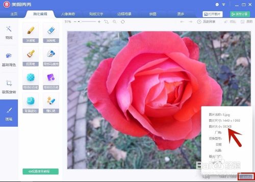 打开图片后,在屏幕的右下角点击”EXIF“,可看到文件大小为392KB。