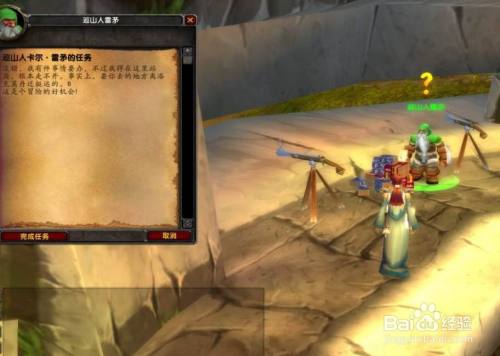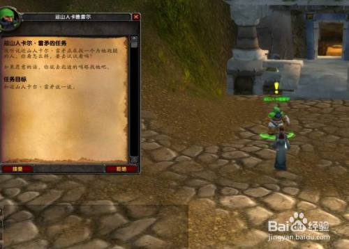 1、进入游戏,与巡山人卡德雷尔对话,接受任务。