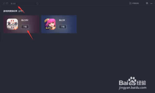 点击左边的游戏中心然后点击图中所指上方的搜索框 搜索:龙之谷2