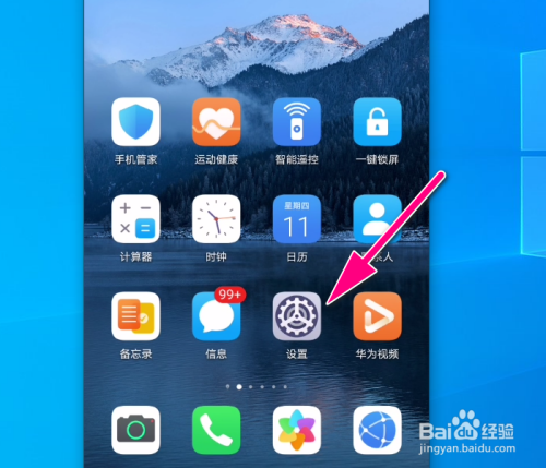 打开华为手机以后,在桌面上点击设置图标