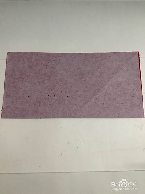 第一步 首先将一张16厘米长X16厘米宽的正方形红色彩纸 把它平放 然后从下向上对边折叠整齐