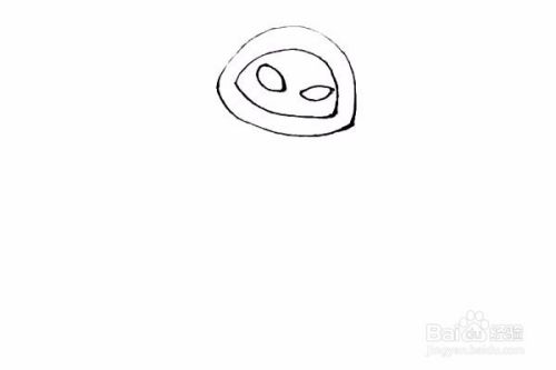 在头的里面,再画上一个同样的形状,并画上两个椭圆形的眼睛。