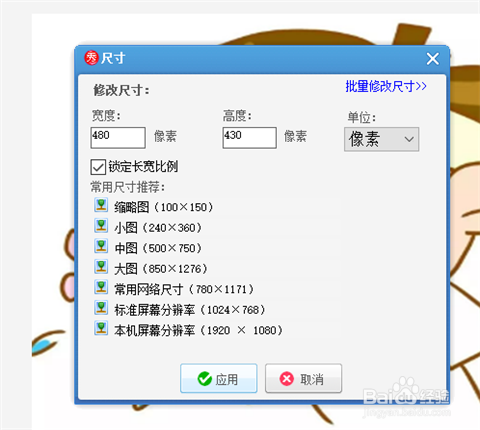 小编以一张图片为例。文件-打开,随即打开一张图片,打开图片后,选择“重新调整图片”,可以按照自己需要的像素或者百分比调整。可以锁定纵横比也可以自己随意调整。