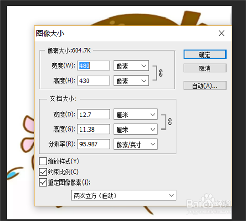 第二种方法就是ps,把图片以PS的形式打开后,点击图像-图像大小,可以改变像素大小和文档大小,可以按照缩放样式和约束比例。