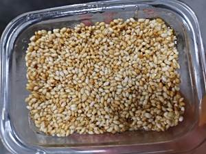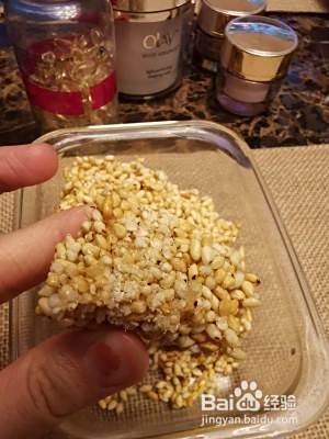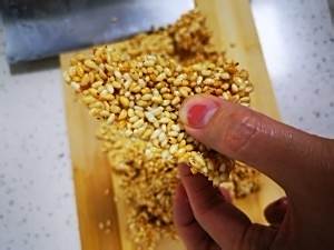 熬好的糖加大米搅拌,最好每一粒都能均匀粘上糖浆,?喜欢吃坚果的小盆友,可以在这步加里一起搅拌均匀,我没有加