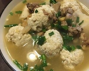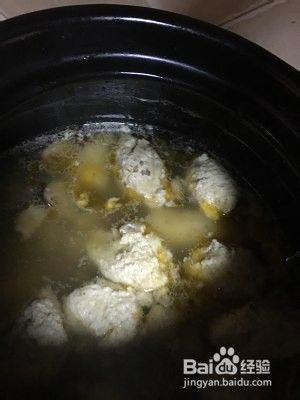 找一个普通的汤匙来做丸子!(今天的配方大概可以做30多个丸子),在已烧沸的汤里(我用的是上一顿吃剩的酸萝卜老鸭汤,用现熬的大骨汤也很棒!)加入一个个丸子,开小火煮,十分钟左右后丸子会浮起来,再闷一下就好了!