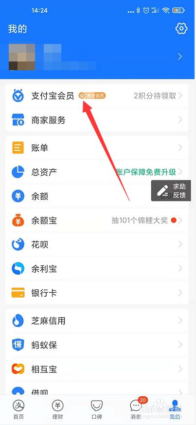 进入我的页面后点击“支付宝会员”