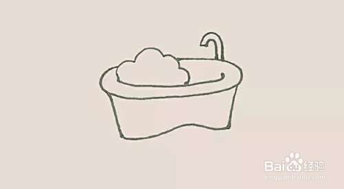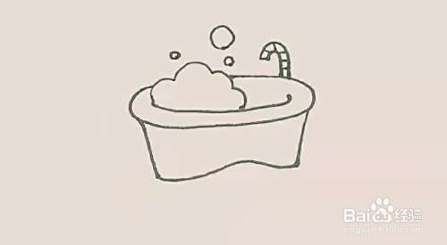 浴缸旁边,再画上一个弯曲的水龙头。