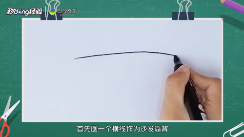 首先画一个横线作为沙发靠背,再画两个长方形作为扶手。
