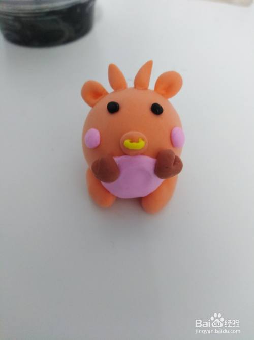 最后用黑色的粘土制作两个眼睛,可爱的小黄牛就做好啦