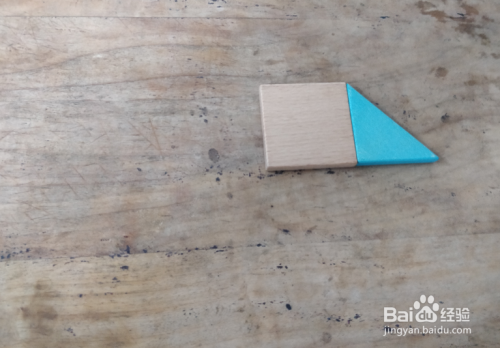 摆上蓝色三角形,左侧摆上正方形挨着,如图。