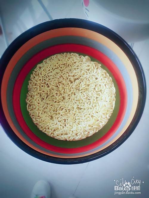 把我们的主食方便面饼拿出来放在碗里,备用。当然这个主食也是个人喜好,我是吃麻辣烫一定会配方便面饼的,有些人会配米粉,或粉丝之类的。