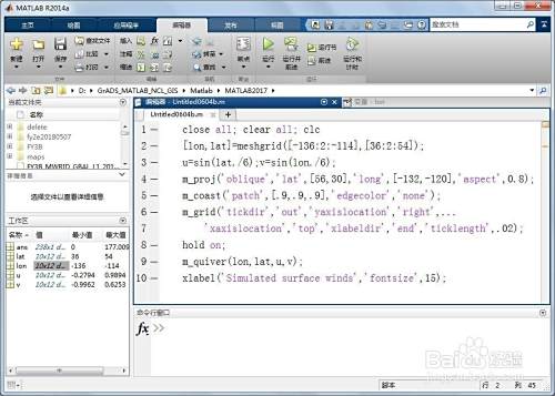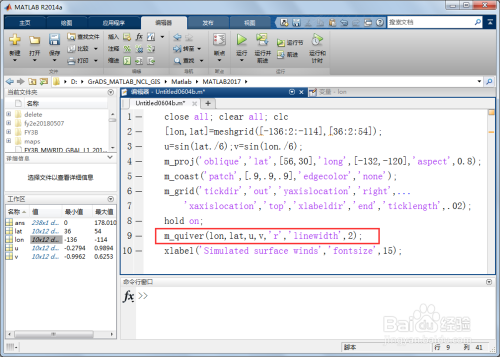 另外,m_coast为设置海岸线,m_grid为设置网格线和坐标标注,m_quiver为绘制箭头图。