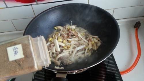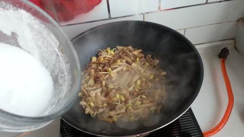 7下入黄豆芽,炒至断生。