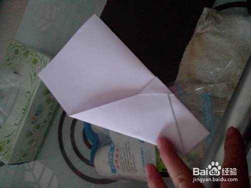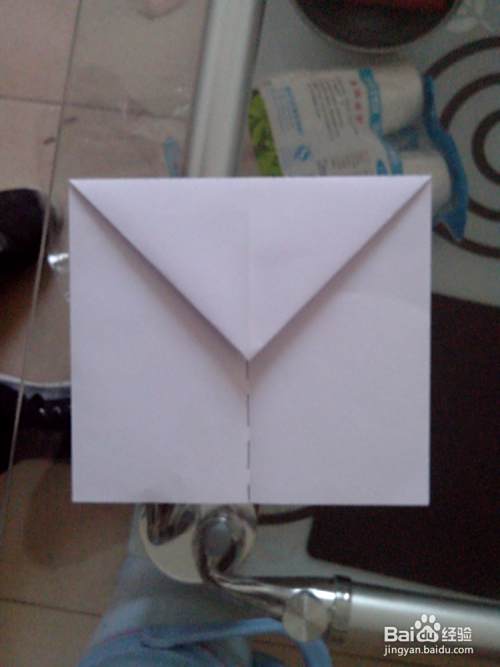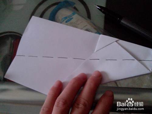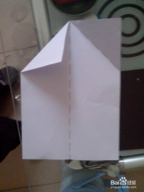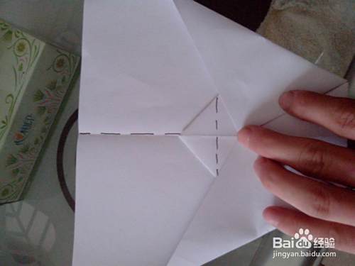 再将上端的两角沿虚线向中间对折,一定要对称。