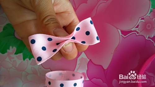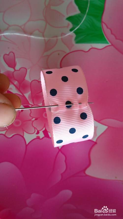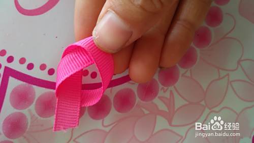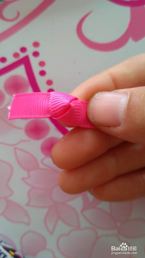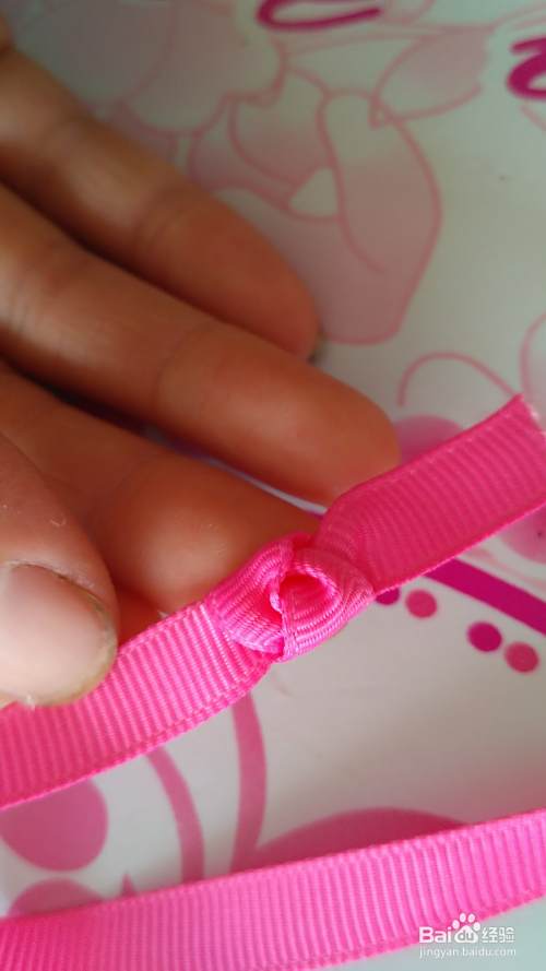 选择0.9丝带一条,把丝带系一个扣(如图)。