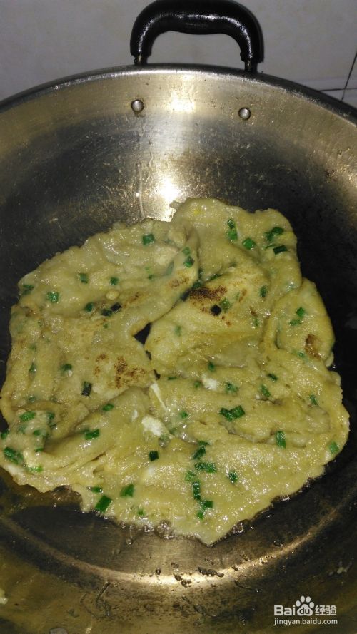 再加入鸡蛋,搅拌,然后锅内放少许油,待油烧好后倒入锅中开始煎,小火慢慢得煎,煎好一面然后再翻,好吃的红薯粉煎饼出锅咯,出锅就可以吃(虽然卖相有点难看,但是很有营养的噢)