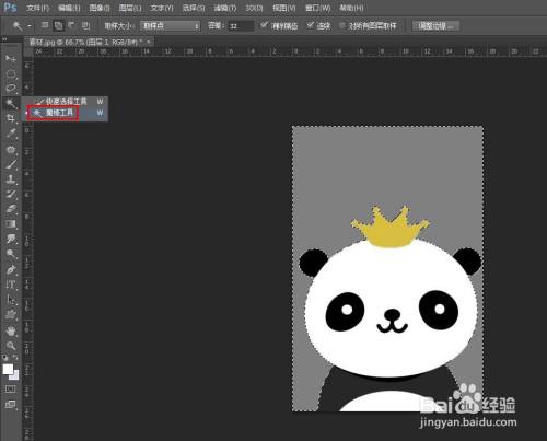 第三步:用工具栏中的“魔棒工具”,选中图片中的背景区域。